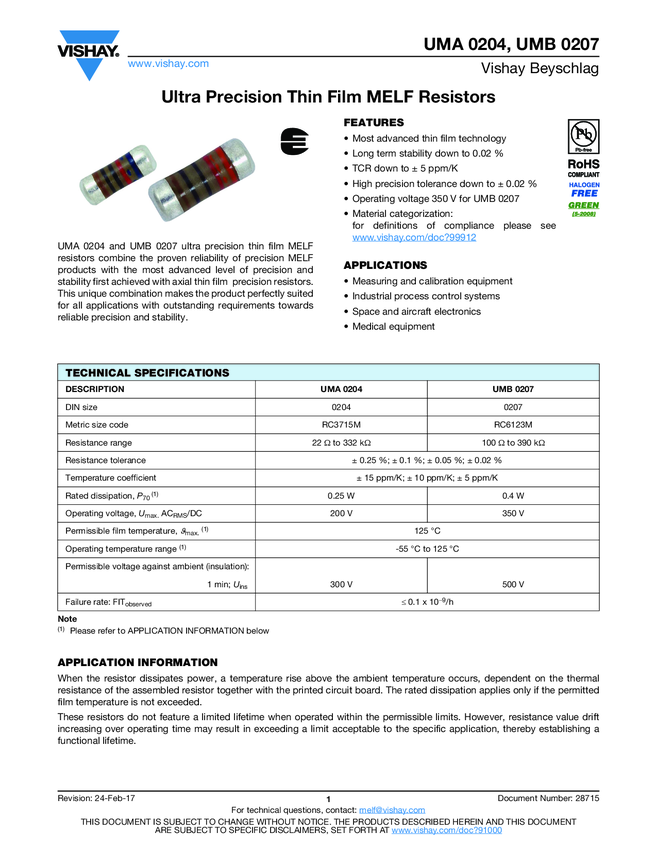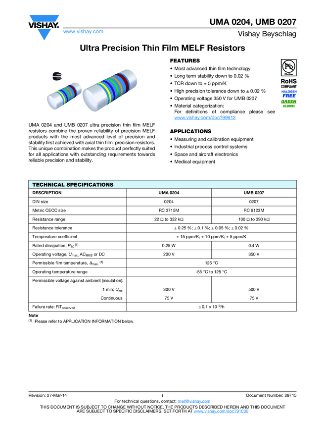 Ultra Precision Thin Film MELF Resistors