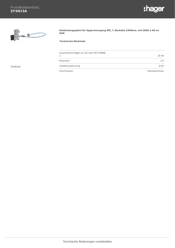 Hager ZY5N1SA Pakiet umieszczający 230 V 1 szt.