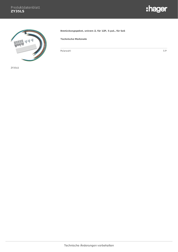 Hager ZY35LS Pakiet umieszczający 5 styków 1 szt.