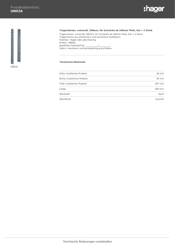 Hager UN02A UN02A stal 300 mm 1 szt.
