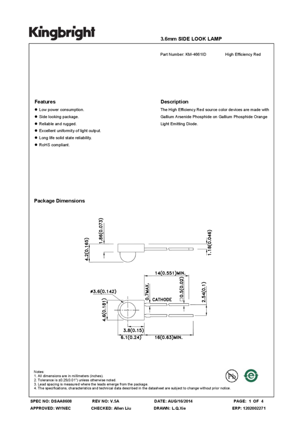 LED Unicolor Yellow 590nm Standard LED 4-Pin