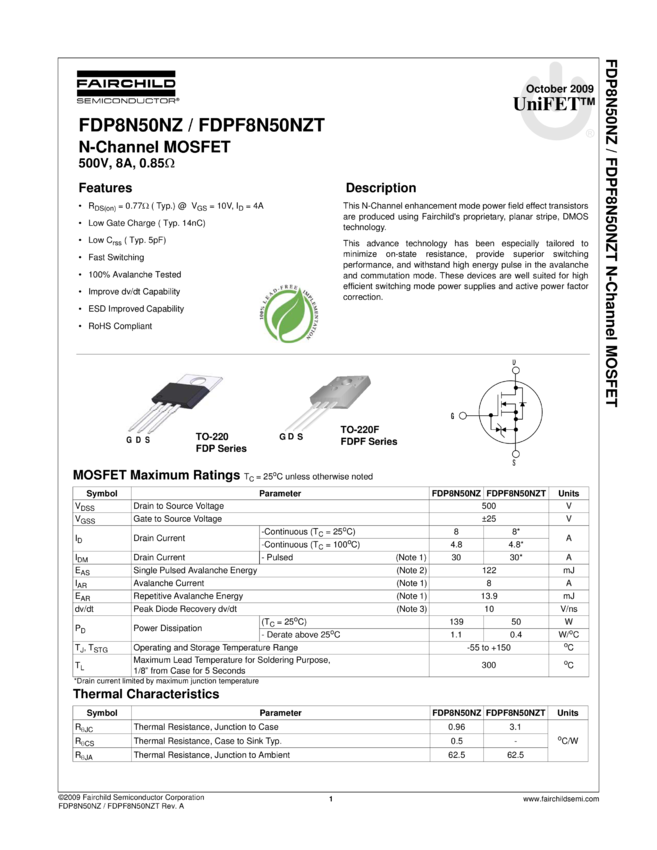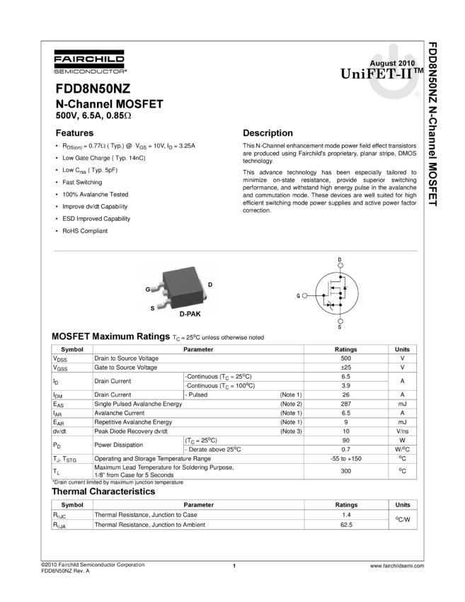 N-Channel UniFET<sup>TM</sup> II MOSFET 500V, 8A, 850mΩ