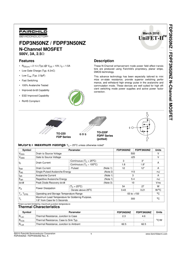 N-Channel UniFET<sup>TM</sup> II MOSFET 500V, 3A, 2.5Ω