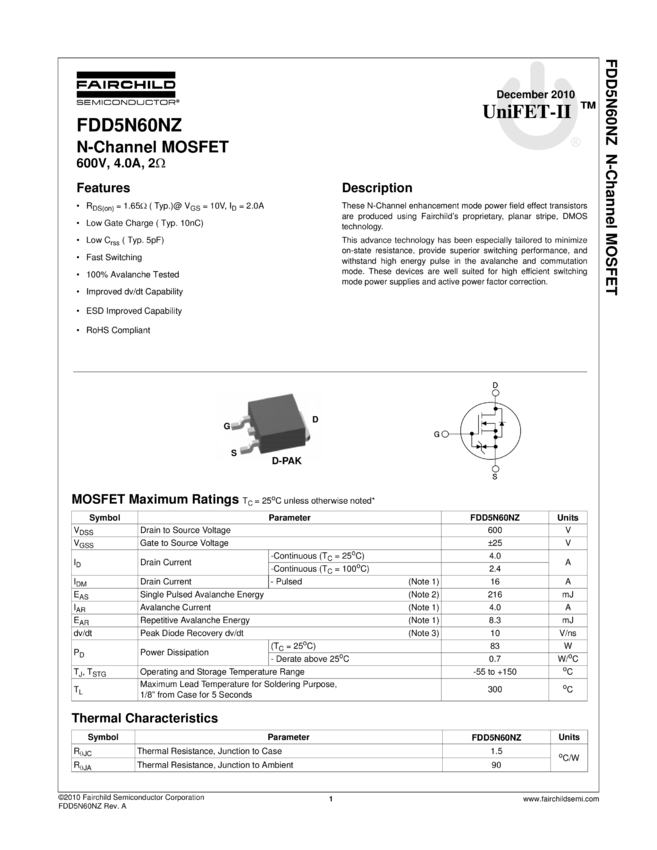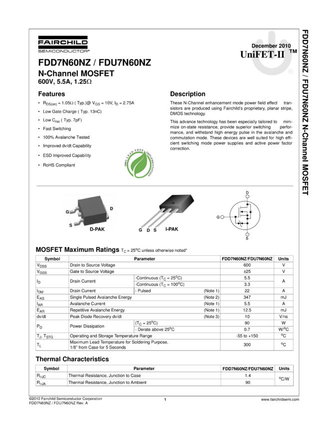 N-Channel UniFET<sup>TM</sup> II MOSFET 600V, 10A, 750mΩ