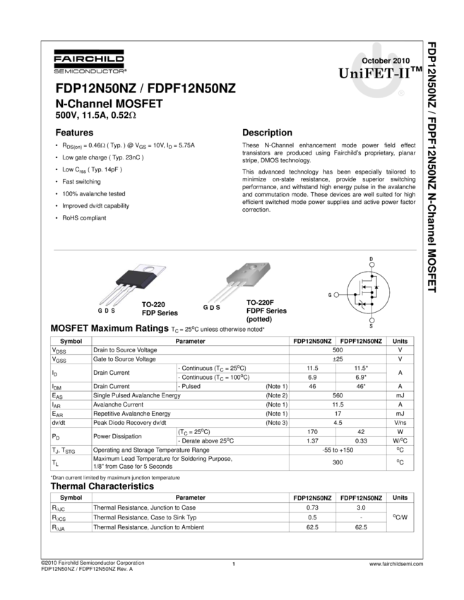 N-Channel UniFET<sup>TM</sup> II MOSFET 500V, 11.5A, 520mΩ
