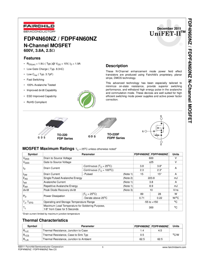 N-Channel UniFET<sup>TM</sup> II MOSFET 600V, 4A, 2Ω