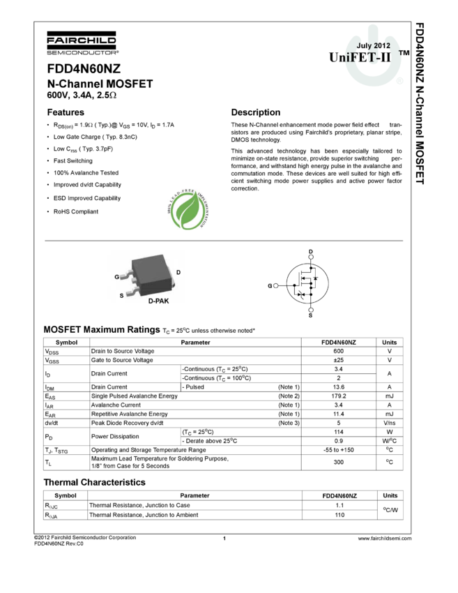 N-Channel UniFET<sup>TM</sup> II MOSFET 600V, 12A, 650mΩ
