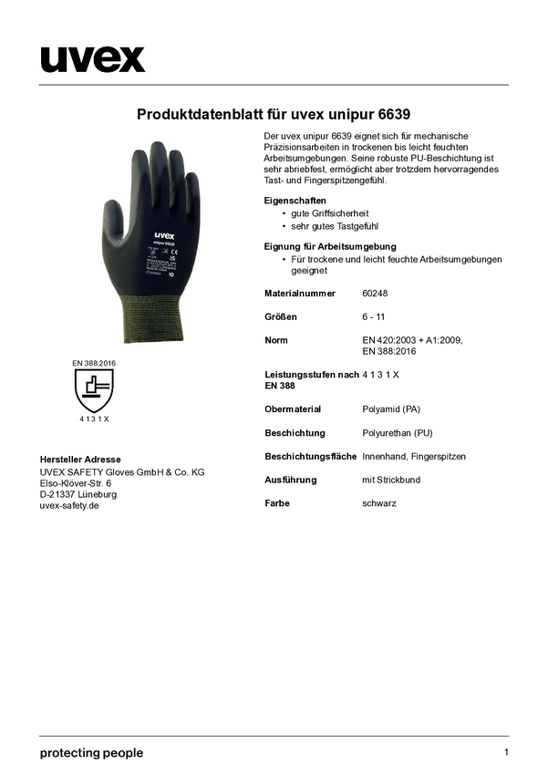 uvex unilite / unipur 6024808 Poliamid, Poliuretan Rękawice montażowe Rozmiar rękawic: 8 EN 388 1 par(a)