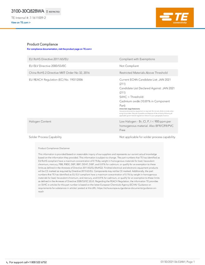 TE Connectivity TE AMP Contactors - Prod Unlim