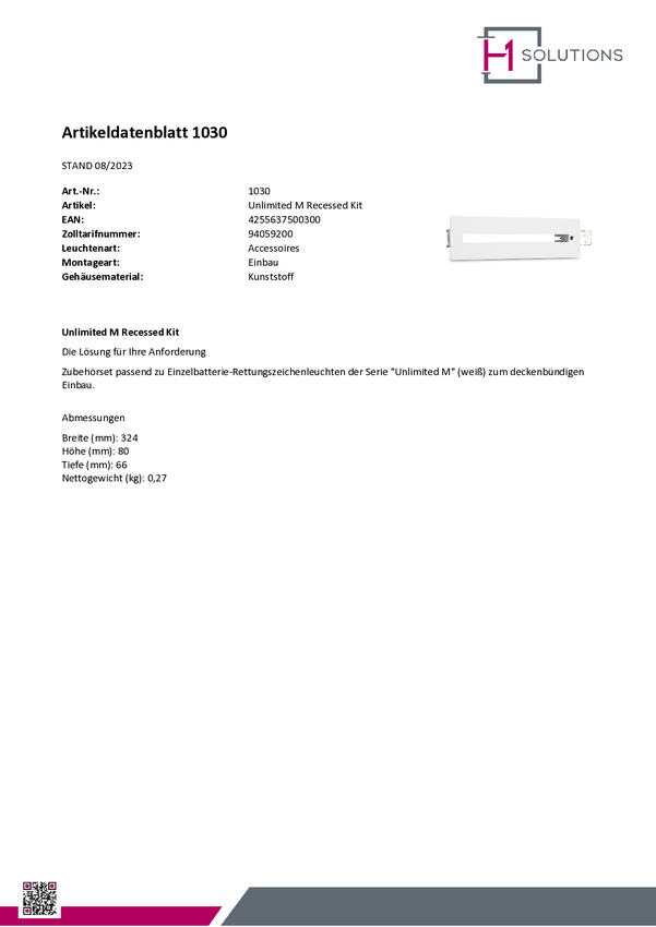 Zestaw do montażu sufitowego H1 Solutions Unlimited M Recessed Kit 1030, 1 szt.