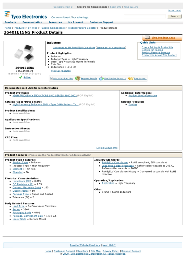 Ind High Frequency Chip Molded/Unshielded Thin Film 1nH 0.2nH 500MHz 13Q-Factor 700mA 0402 T/R
