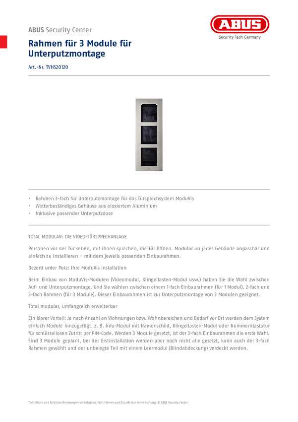 ABUS TVHS20120 ABUS TVHS20120 Rahmen für 3 Module für Unterputz Rama 3fach