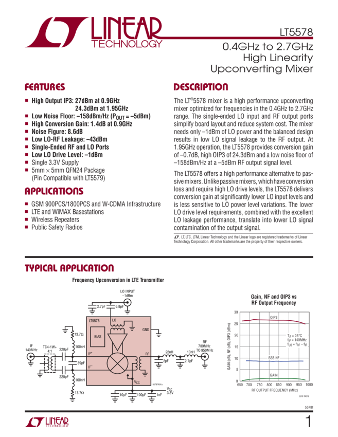 0.4GHz to 2.7GHz High Linearity Upconverting Mixer