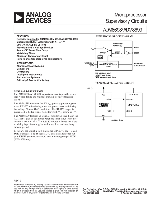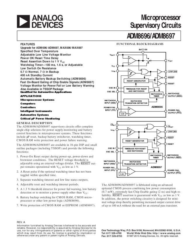 Microprocessor Supervisor with Chip Enable Signals, Adjustable Low Line Voltage Monitor, Adjustable Watchdog Timer, Low Line, Power Fail and Watchdog Status Outputs, Reduced Power Consumption. Upgrade for ADM697