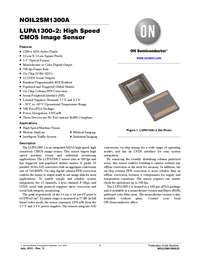 Image Sensor Monochrome CMOS 1280x1024Pixels 168-Pin uPGA Tray