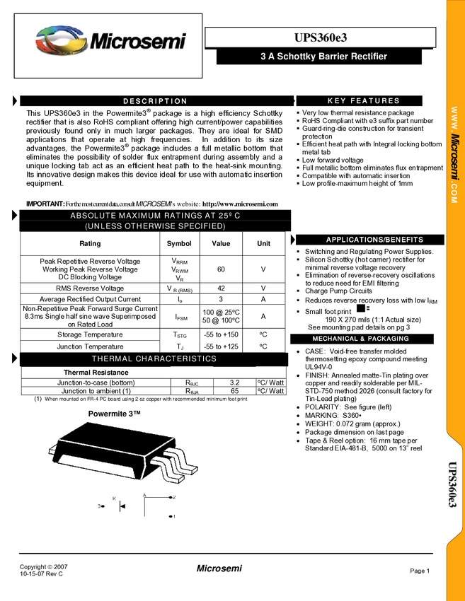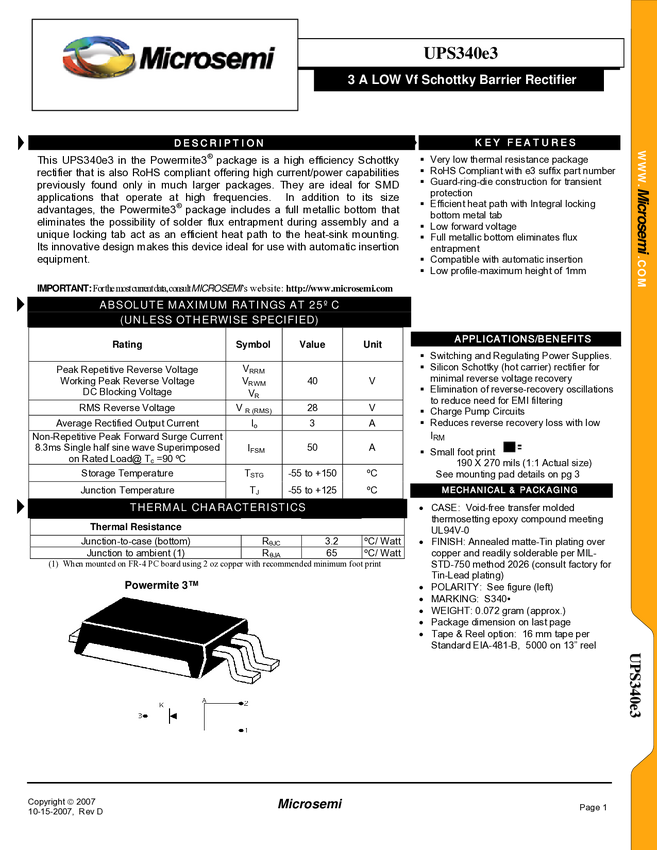 RF01313 3 Amp Schottky Barrier Rectifiers