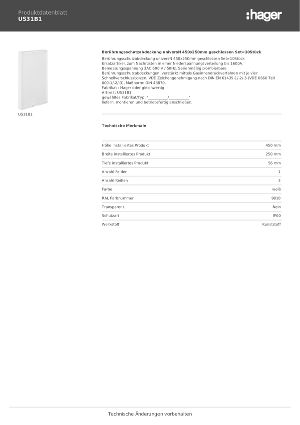 Hager US31A3 Osłona ochronna styków tworzywo sztuczne biały 1 szt.