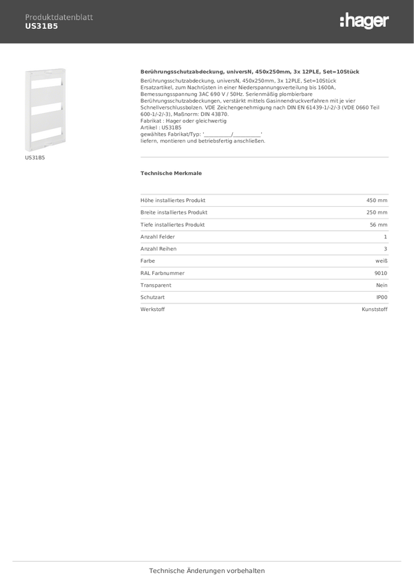 Hager US31B5 Osłona ochronna styków tworzywo sztuczne 1 szt.