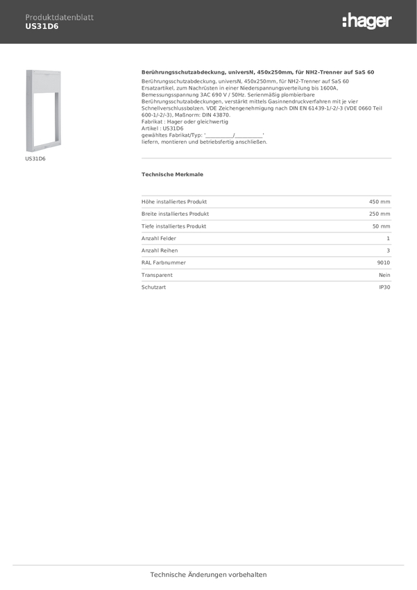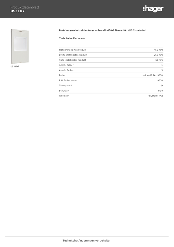 Hager US31D7 Osłona ochronna styków tworzywo sztuczne 1 szt.