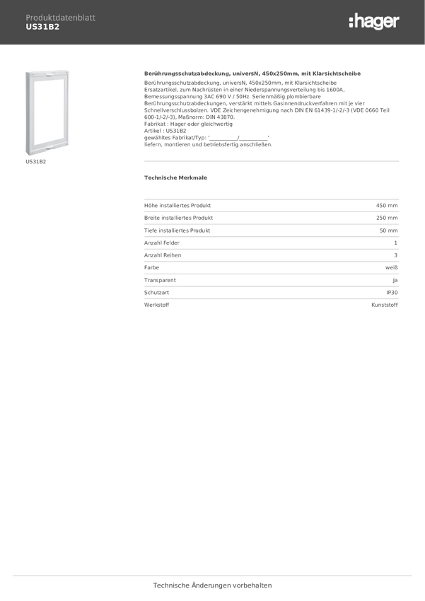 Hager US31B2 Osłona ochronna styków tworzywo sztuczne 1 szt.
