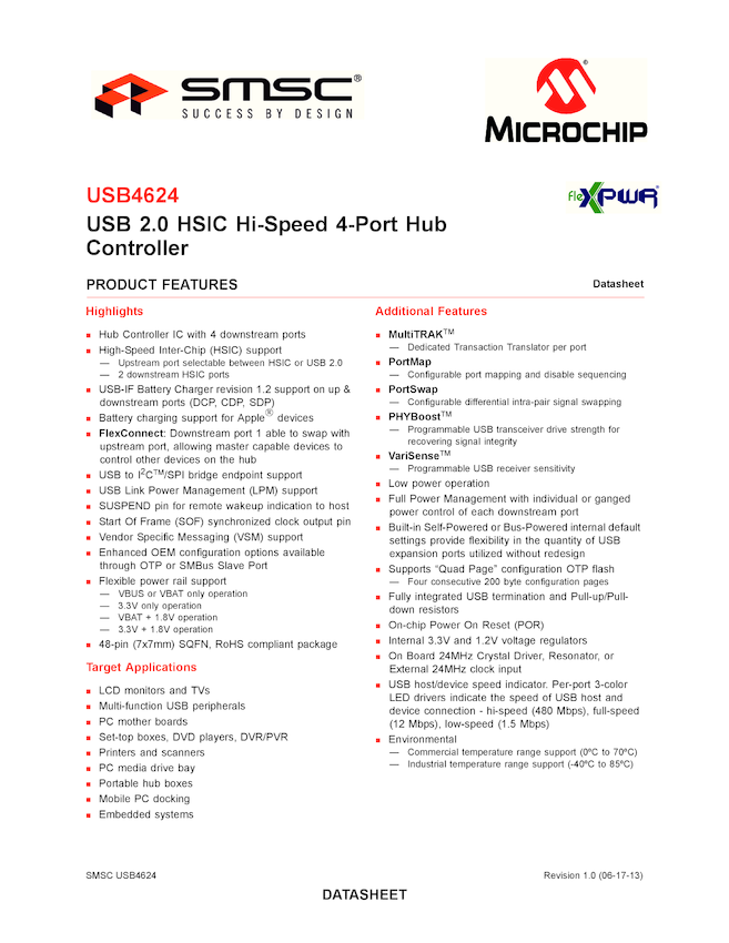 USB4624 USB 2.0 HSIC Hi-Speed 4-Port Hub Controller (05/05/2014)