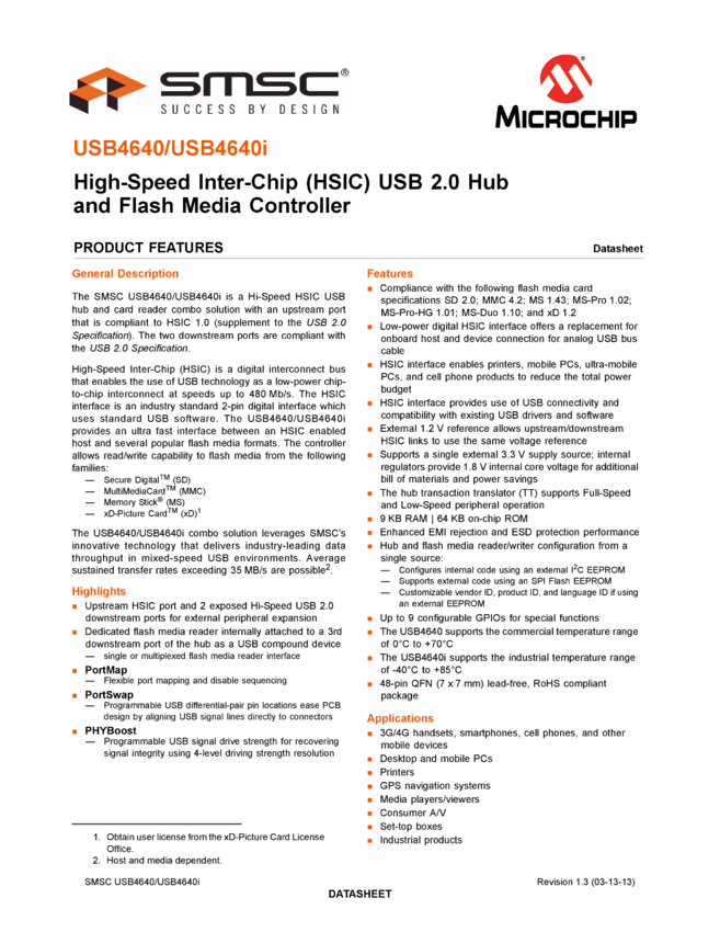 USB4640/USB4640i High-Speed Inter-Chip (HSIC) USB 2.0 Hub and Flash Media Contr (03/13/2013)