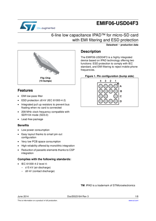 Micro−Packaged (0201 DFN) Diodes for ESD Protection of 3.3 V GPIO, Audio and uSD Card lines