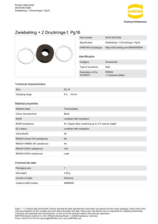 Pierścien uszczelniający Harting 09 00 000 5029, 1 szt.