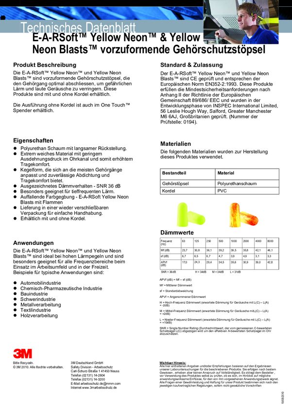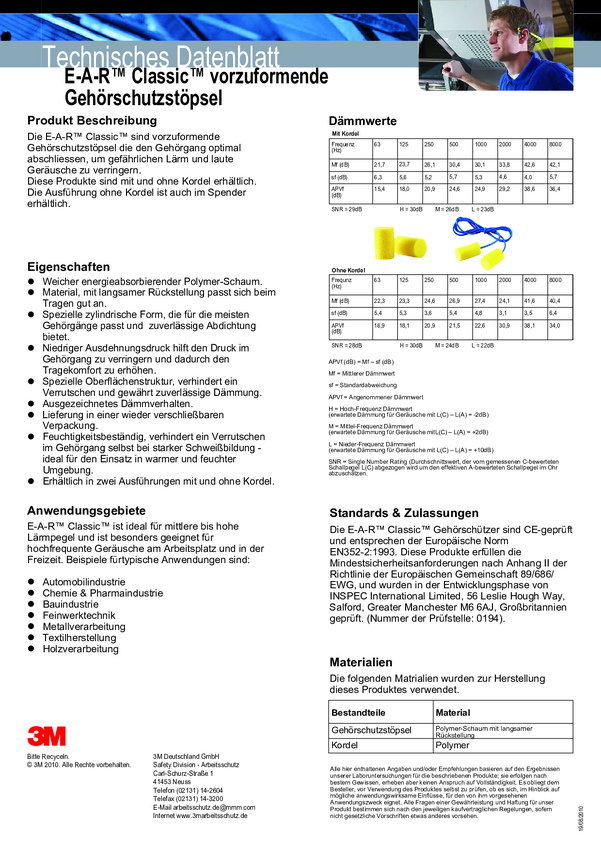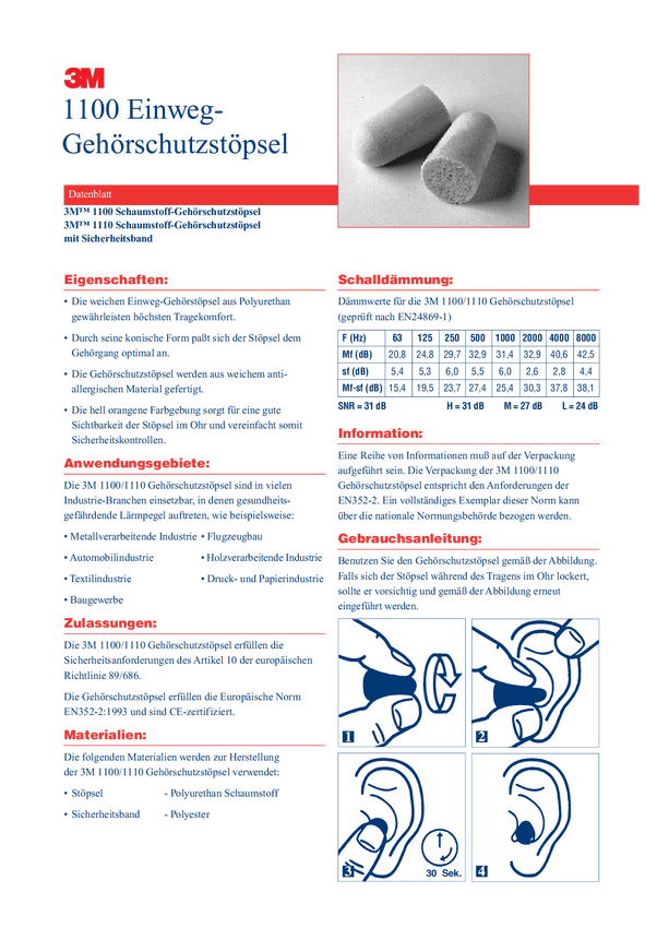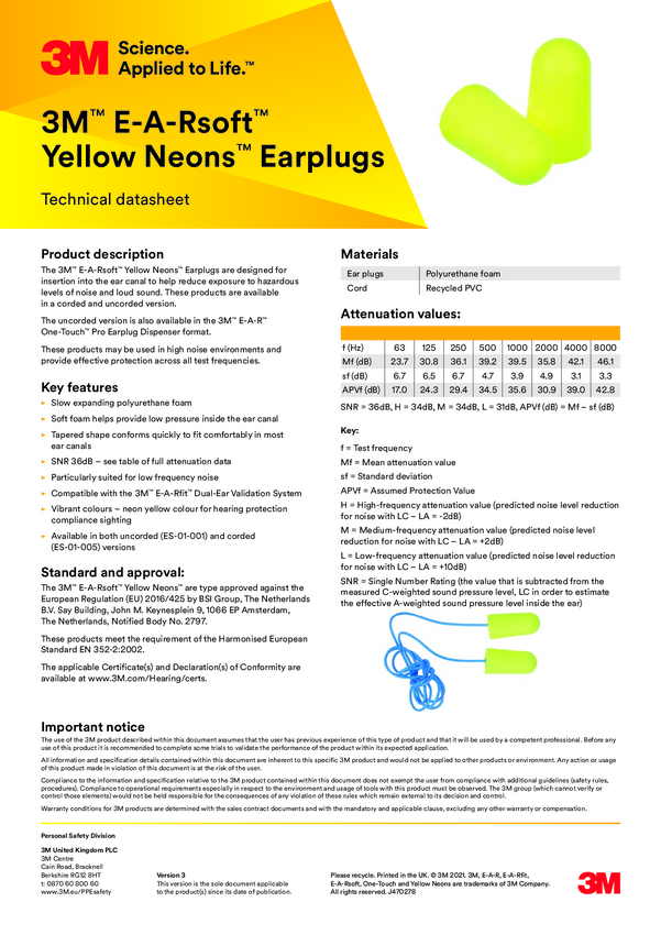 3M EAR ES01001 Zatyczki do uszu 34 dB jednorazowa EN 352-2 250 par(a)