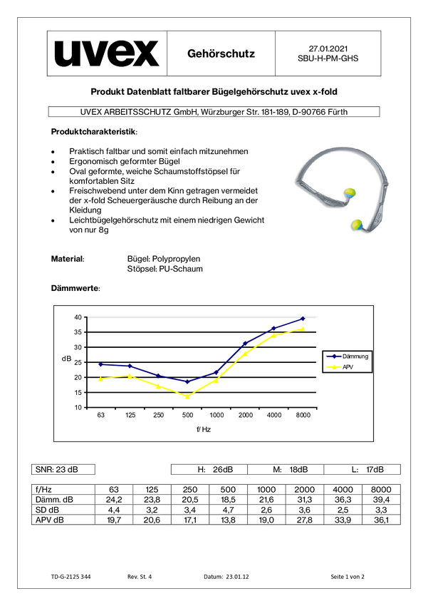 uvex X-FOLD 2125344 Zatyczki ochronne do uszu 23 dB 1 szt.