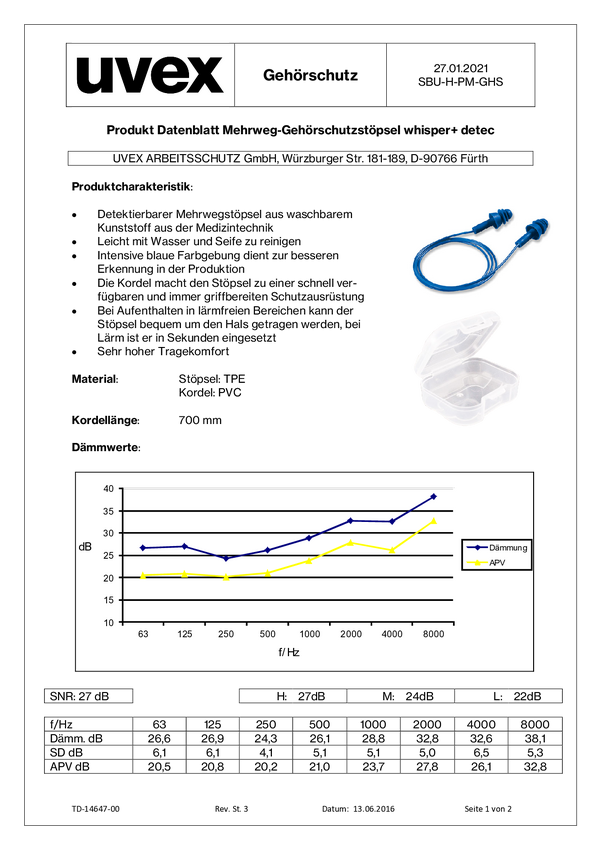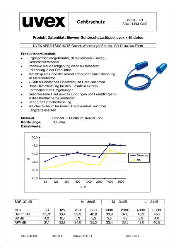 uvex 2112011 x-fit detec Zatyczki do uszu 37 dB jednorazowa 100 par(a)