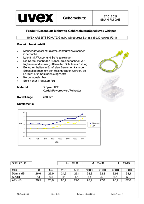 uvex 2111239 Whisper+ Zatyczki do uszu 27 dB wielokrotnego użytku 50 par(a)
