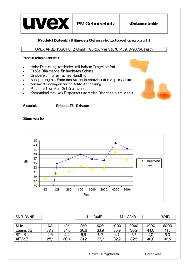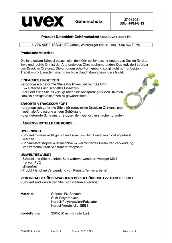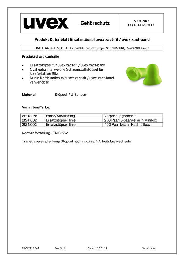 uvex 2124002 xact-fit Zatyczki do uszu 26 dB jednorazowa 250 par(a)