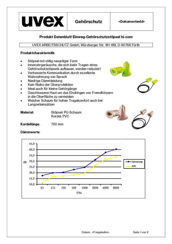 uvex 2112095 hi-com Mini Zatyczki do uszu 24 dB jednorazowa 100 par(a)