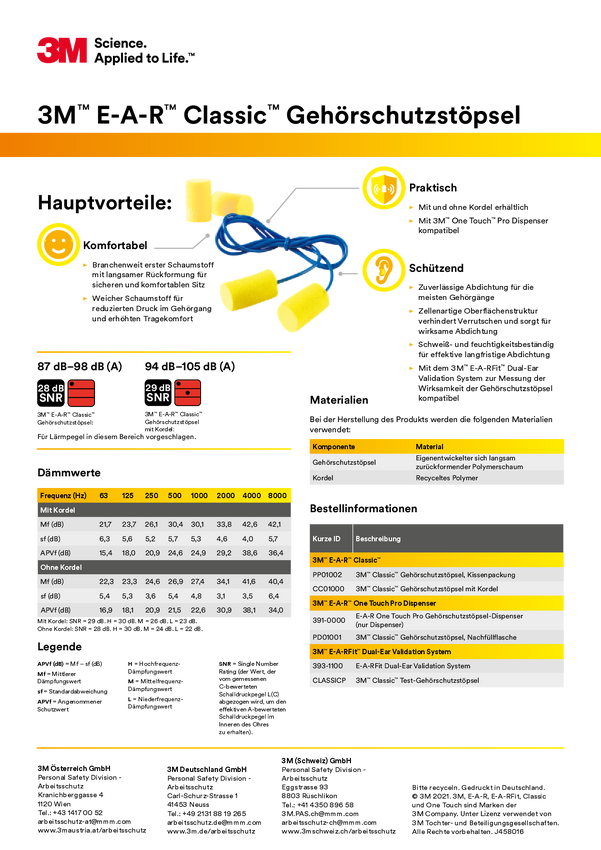 3M EAR PD01001 Classic Zestaw uzupełniający zatyczek do uszu 31 dB jednorazowa EN 352-2 500 par(a)