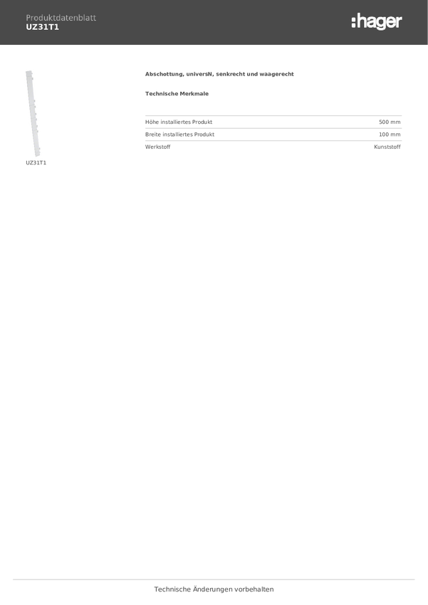 Hager UZ30T1 Profil podziału tworzywo sztuczne wielobarwny 1 szt.