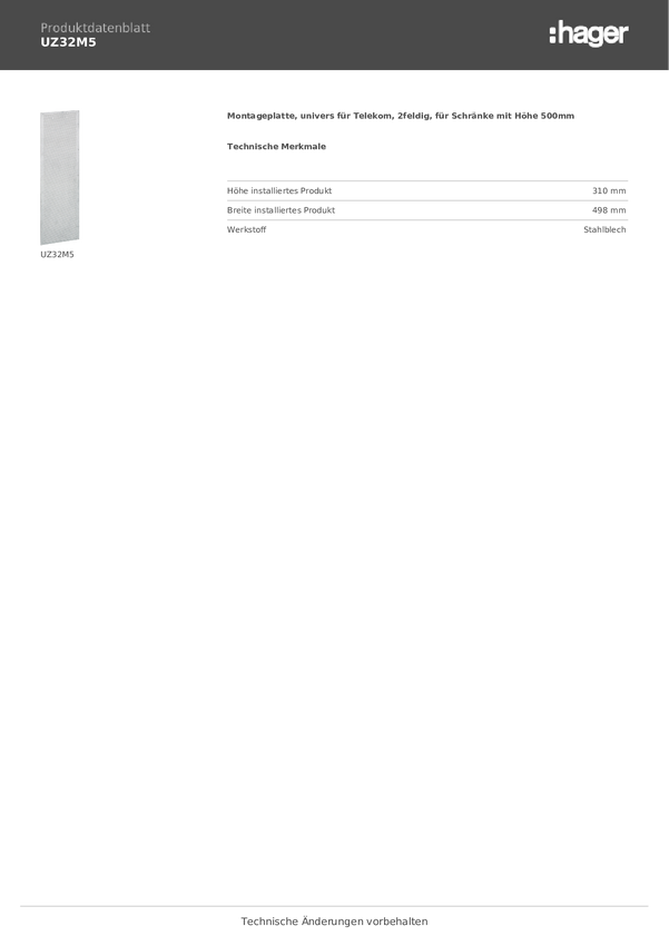 Hager UZ32M5 Płyta montażowa stal 1 szt.