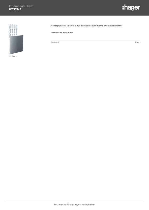 Hager UZ32M3 Płyta montażowa stal 1 szt.