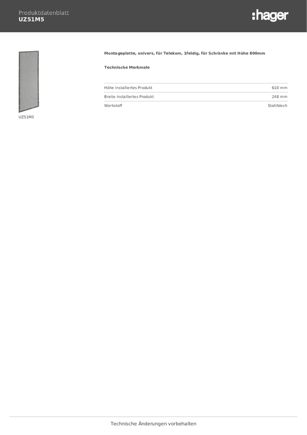Hager UZ51M5 Płyta montażowa stal 1 szt.