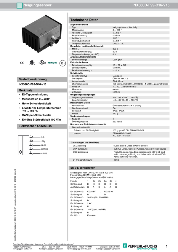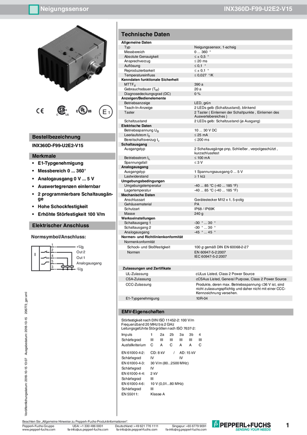 Pepperl+Fuchs Inklinometr INX360D-F99-U2E2-V15 206773 M12, 5 pin