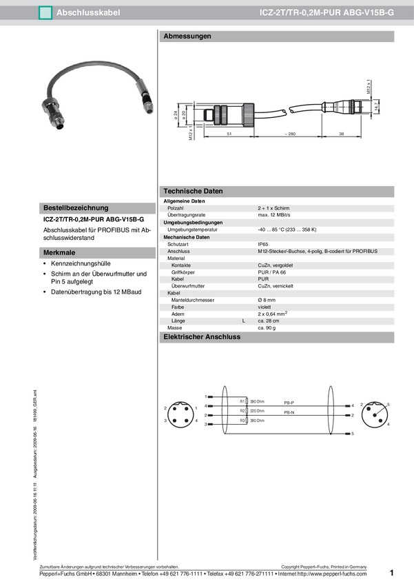 Pepperl+Fuchs 181499 Kabel kończący ICZ-2T/TR-0,2M-PUR ABG-V15B-G 1 szt.