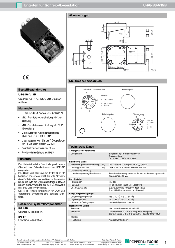 Pepperl+Fuchs 130150 Jednostka analizująca RFID U-P6-B6-V15B 1 szt.