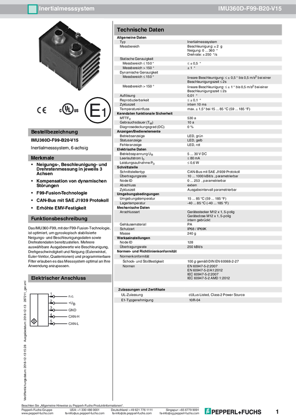 Pepperl+Fuchs 287211 System pomiaru inercyjnego IMU360D-F99-B20-V15 1 szt.