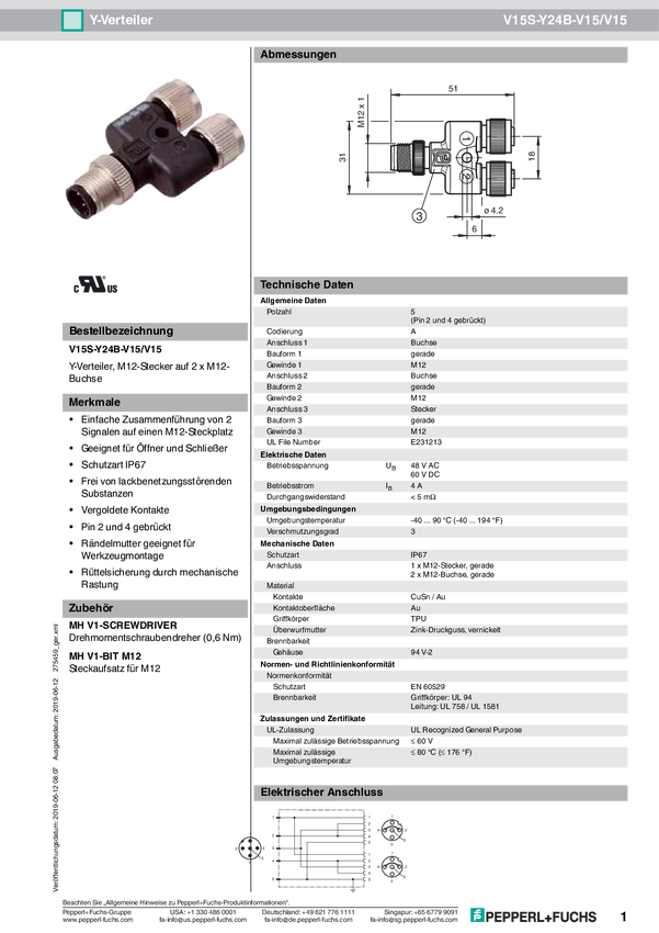 Pepperl+Fuchs 275459 Rozdzielacz Y V15S-Y24B-V15/V15 1 szt.