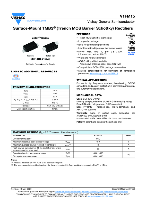 Surface-Mount TMBS® (Trench MOS Barrier Schottky) Rectifier