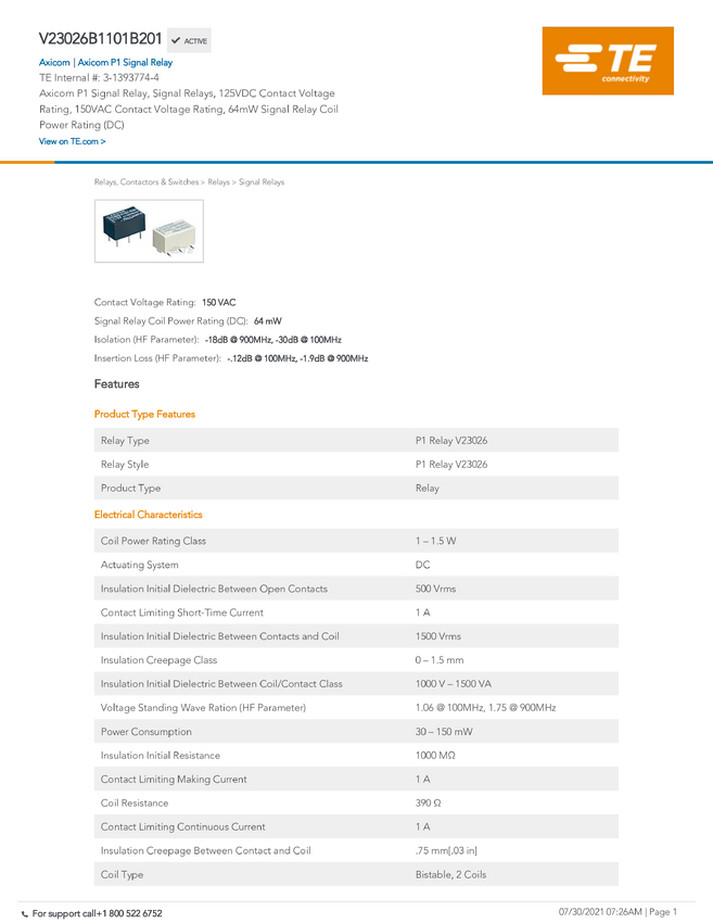 TE Connectivity V23026B1101B201 tuba 1 szt.