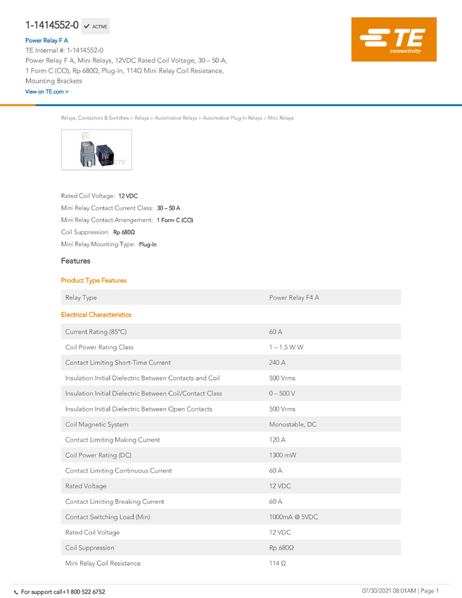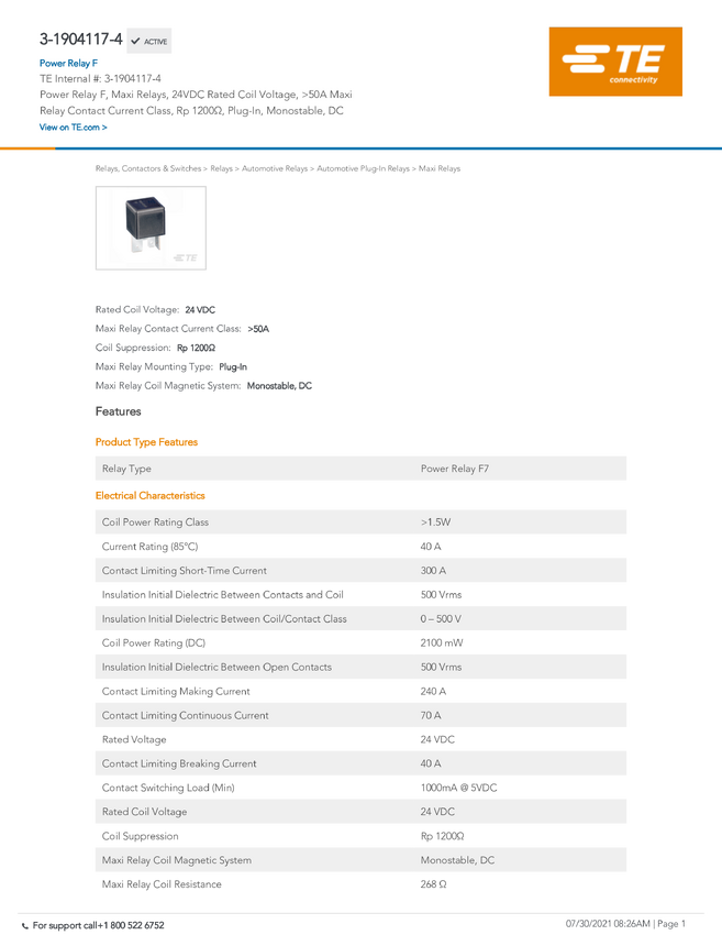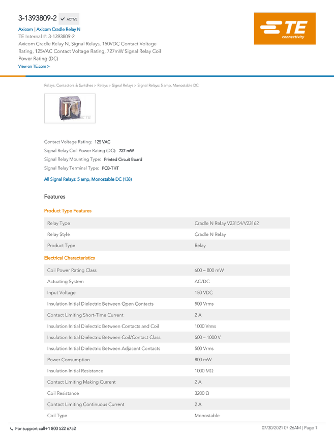 TE Connectivity V23154D726B110 paleta 1 szt.
