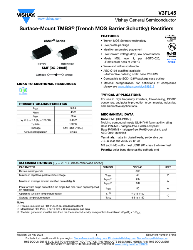 Surface-Mount TMBS® (Trench MOS Barrier Schottky) Rectifiers
