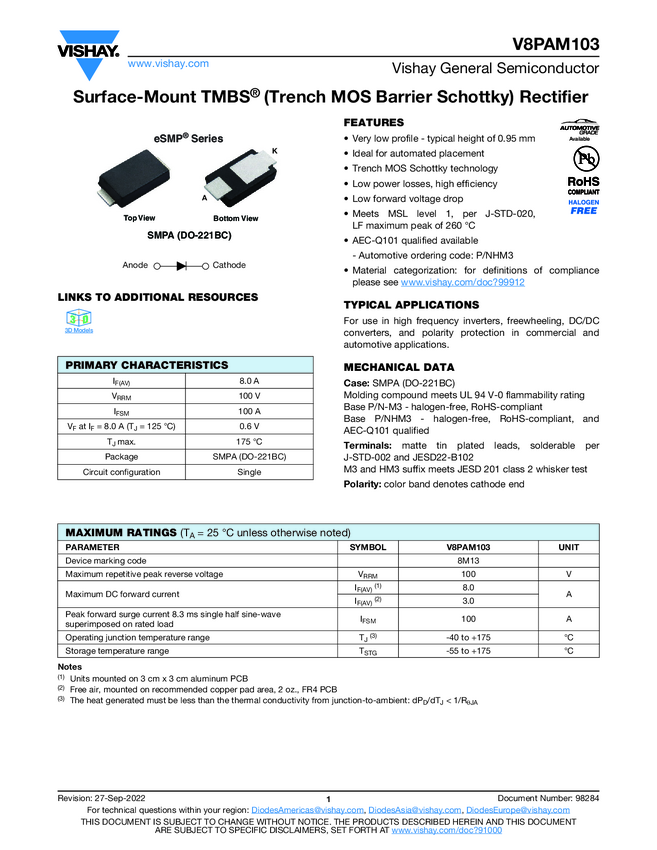 Surface-Mount TMBS® (Trench MOS Barrier Schottky) Rectifier