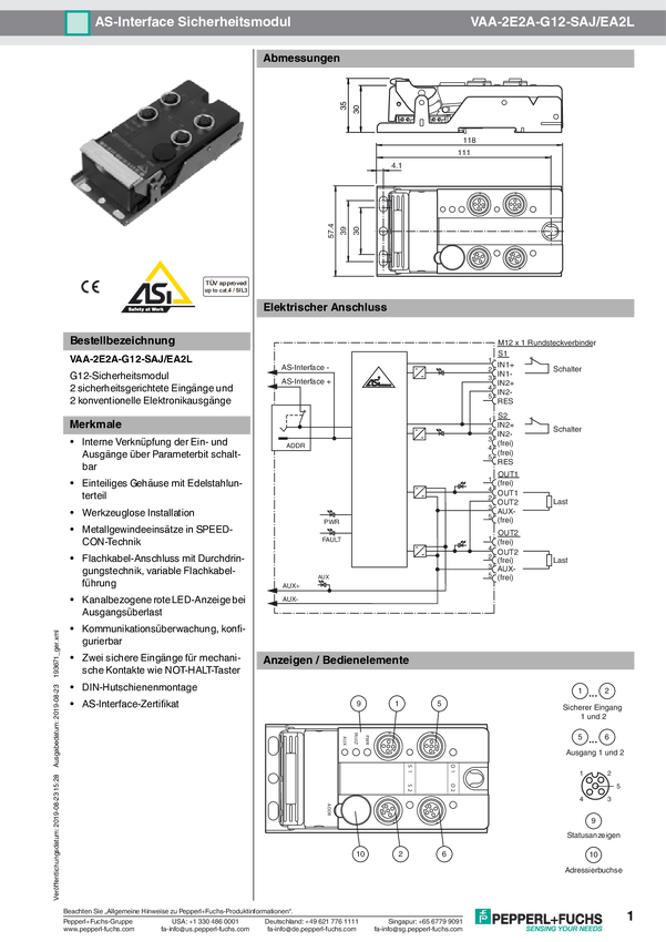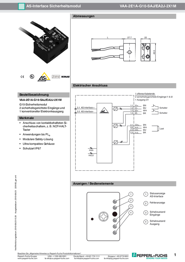Przekaźnik bezpieczeństwa Pepperl+Fuchs 229183 VAA-2E1A-G10-SAJ/EA2J-2X1M 1 szt.